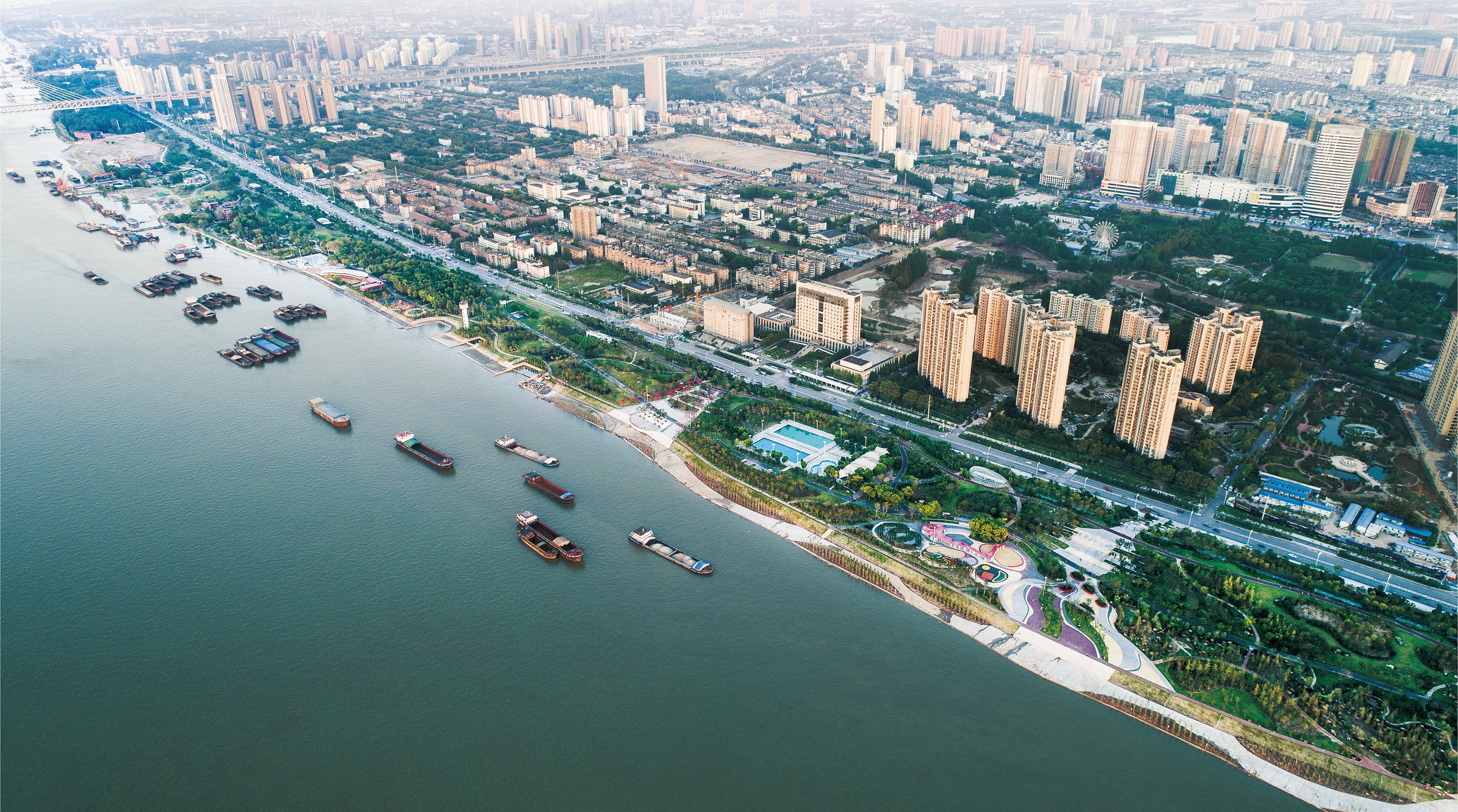 由中國(guó)一冶承建的武青堤工程是全國(guó)首批海綿城市試點(diǎn)項(xiàng)目之一,是湖北省首個(gè)“海綿”江灘和綠化比例最高的江灘,全長(zhǎng)7.5公里,總面積135.48萬(wàn)平方米。中國(guó)一冶研發(fā)應(yīng)用“人水和諧多功能城市生態(tài)堤岸建造關(guān)鍵技術(shù)”,首次在長(zhǎng)江一級(jí)干堤采用“似堤非堤”的微地形手法,打造“城市、江灘、堤防三位一體”的生態(tài)江灘。